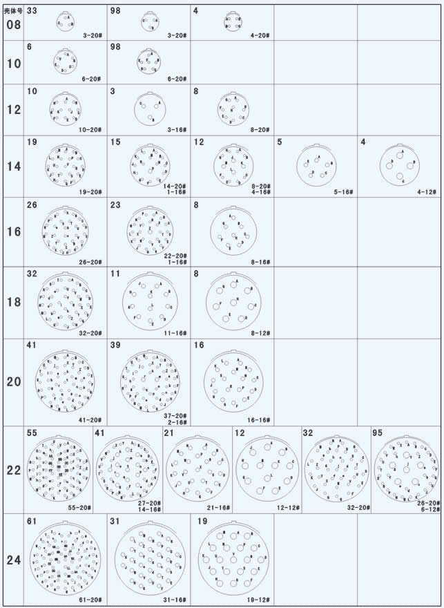 接點(diǎn)排列(裝針絕緣體插合面視圖