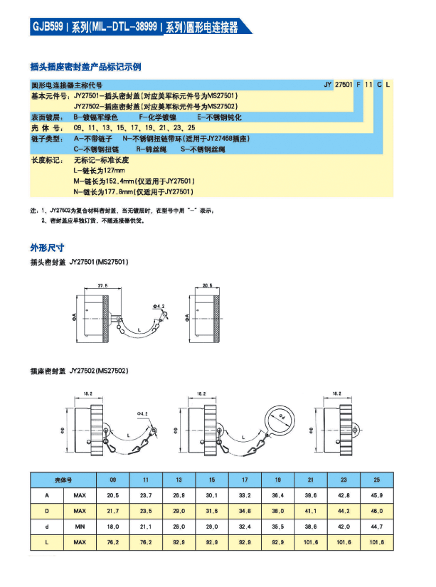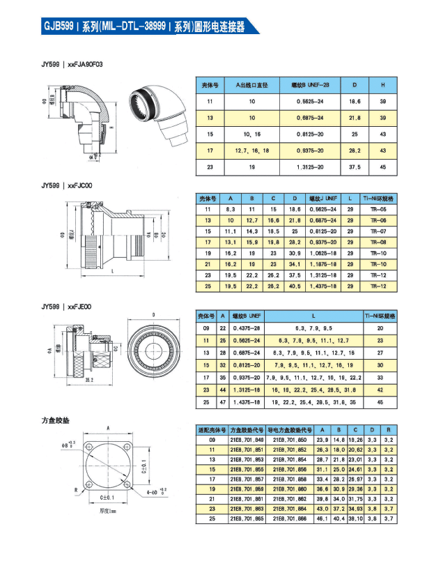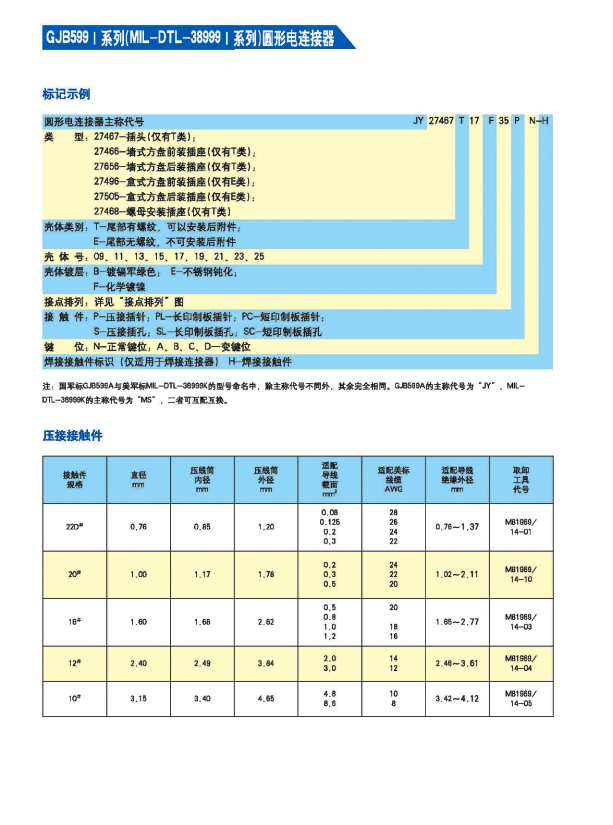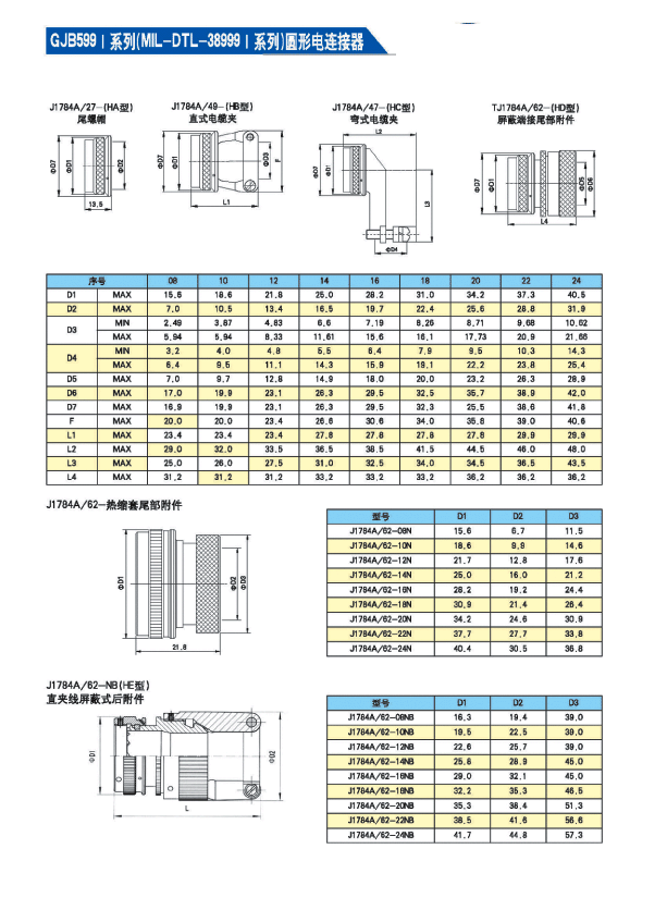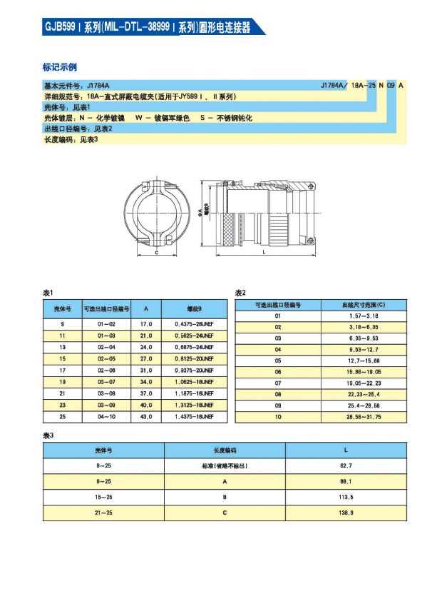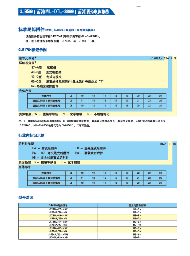 * 符合GJB 599A(MIL-DTL-38999K)Ⅰ 系列
