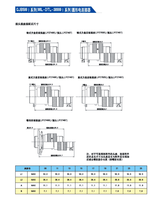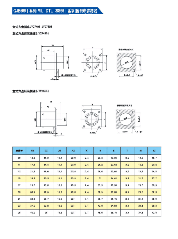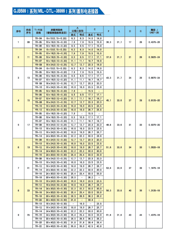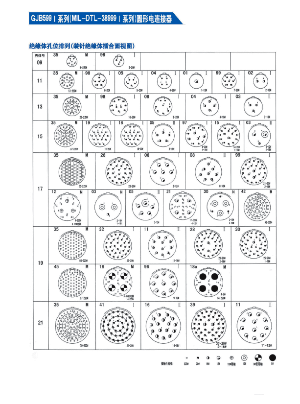 * GJB 599A(MIL-DTL-38999K) I系列航空插頭,9種殼體號,74種孔組排列