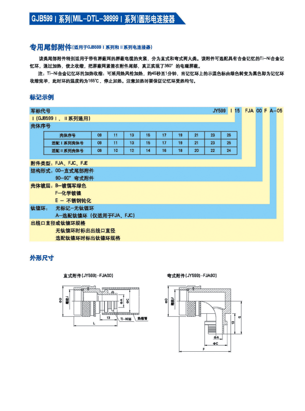 * 適用于屏蔽電纜夾緊的專用尾部附件(Ti-Ni合金記憶環(huán))