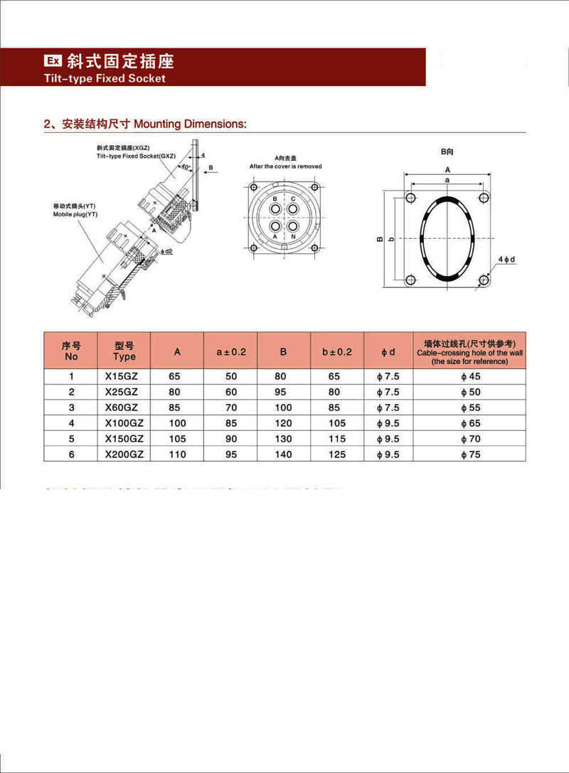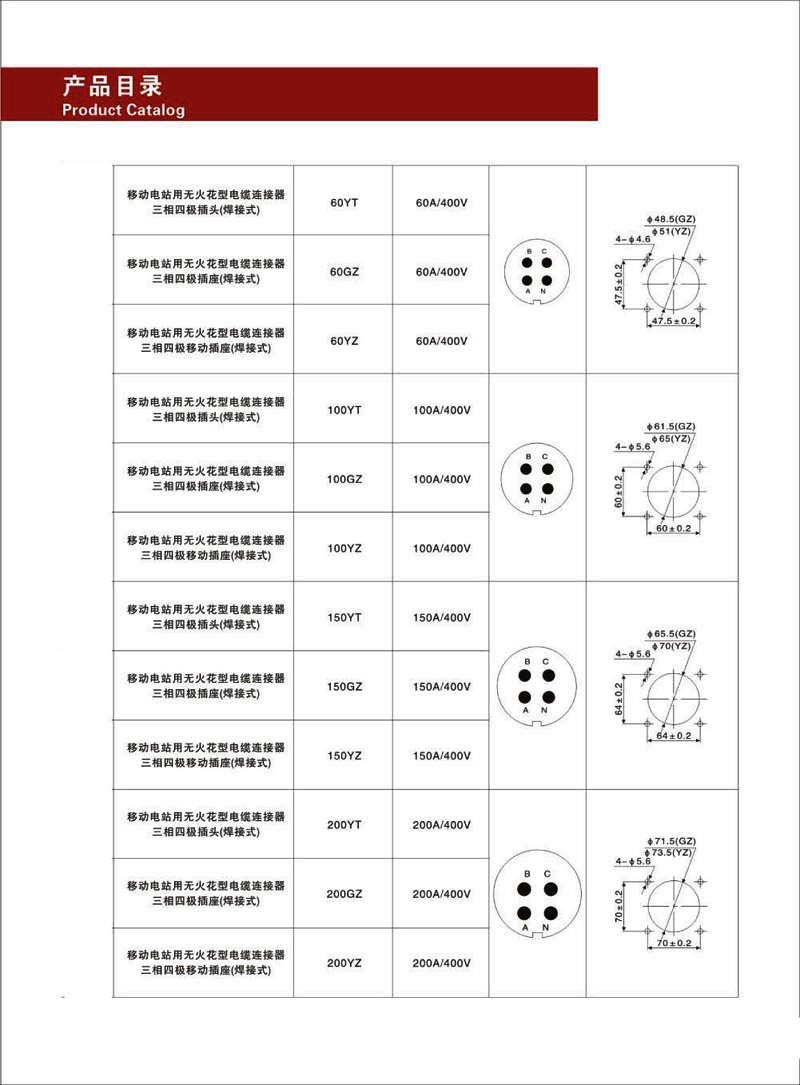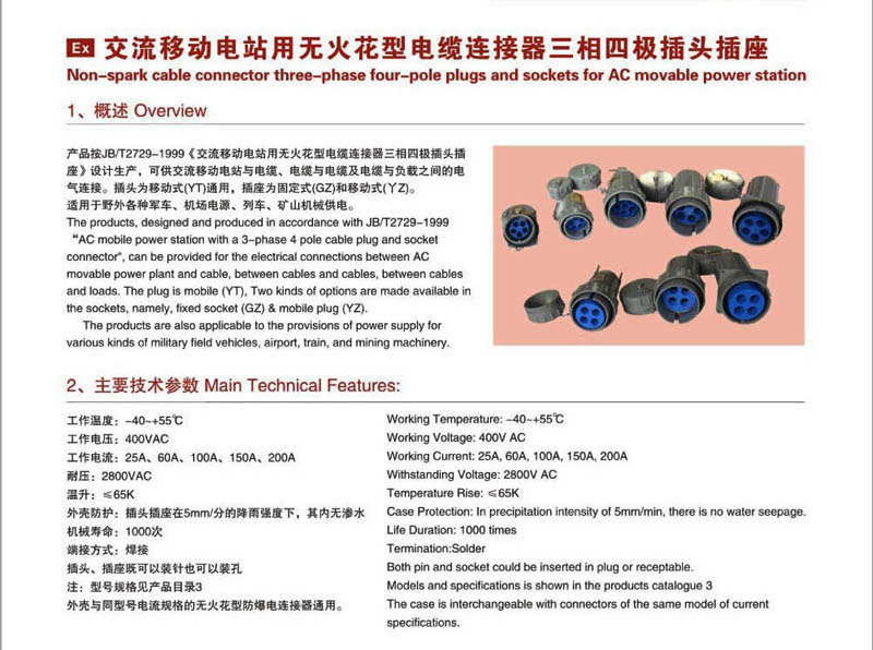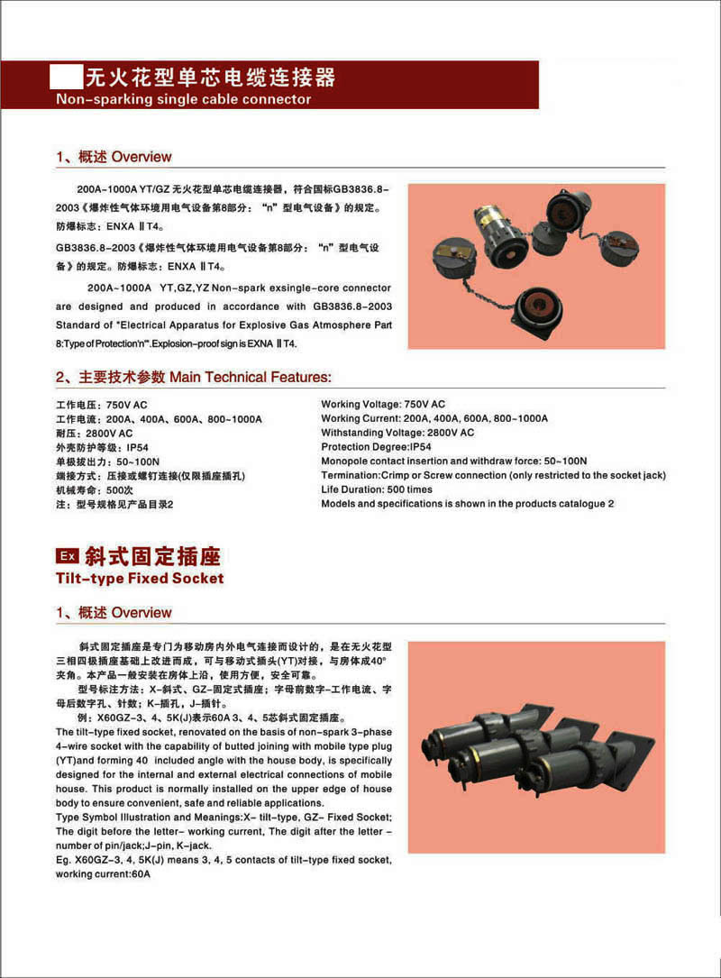該系列產(chǎn)品是低壓低電流防爆連接器,由插頭和插座兩部分組成,其中插頭為移動式(YT),插座有3種形式選擇:①面板固定式(GZ)、②移動式(YZ)和③斜式固定式。