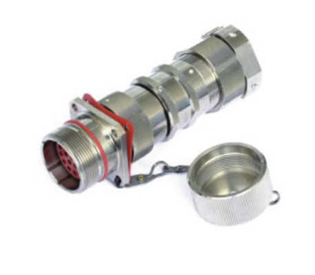 該系列防爆電連接器,在保持傳統(tǒng)產(chǎn)品安裝尺寸的基礎(chǔ)上,結(jié)構(gòu)做了較大的改進(jìn),使之外型美觀,工作更加可靠,通過電流能力更大,安裝更加方便安全,尤其電纜連接方面具有既可焊接、也可壓接的特點(diǎn),給用戶創(chuàng)造了極大的工作方便。該類產(chǎn)品按JB/T2729-1999標(biāo)準(zhǔn)設(shè)計(jì)生產(chǎn)的交流移動(dòng)電站用的三相四極插頭插座,和按GB3936.8-2003《爆炸性氣體環(huán)境用電氣設(shè)備的第8部分“n”型電氣設(shè)備》標(biāo)準(zhǔn)設(shè)計(jì)生產(chǎn)的防爆連接器。該類產(chǎn)品由絕緣外殼、接觸器、固定螺釘、鎖緊螺母、插針、防塵蓋、連接鏈、墊木、膠皮圈、密封圈、墊片、壓板、螺釘、螺母組成,絕緣外殼前端以螺紋連接有接觸器,外側(cè)設(shè)有固定螺釘和鎖緊螺母;絕緣外殼內(nèi)設(shè)有由兩層墊木中間夾有黑色膠皮圈構(gòu)成的組合件,該組合件前端插裝有插針,外側(cè)設(shè)有防塵蓋,并與鎖緊螺母連接旋緊,防塵蓋外側(cè)中心設(shè)有固定螺釘,其上設(shè)有一個(gè)連接鏈;絕緣外殼內(nèi)尾端設(shè)有密封圈和墊片,外側(cè)用鎖緊螺母旋緊,鎖緊螺母外側(cè)設(shè)有由螺母、螺釘、壓板構(gòu)成的電纜卡緊件。此種防爆電連接器結(jié)構(gòu)新穎,工作可靠,利用它可以在含有或可能產(chǎn)生爆炸性氣體混合物等惡劣工作環(huán)境下應(yīng)用,保證電氣設(shè)備正常運(yùn)行和安全生產(chǎn)。廣泛用于石油化工、國防、電力、航空、礦山,油漆或油墨廠家,木材加工廠,水泥廠,船務(wù)和污水處理等領(lǐng)域。