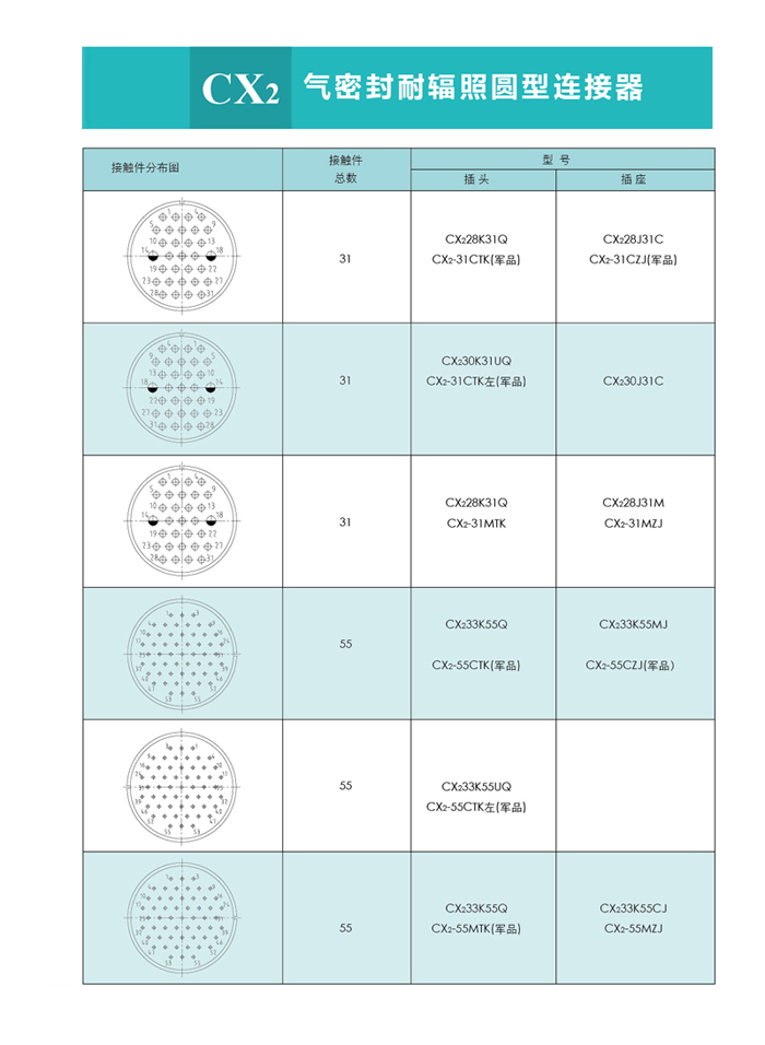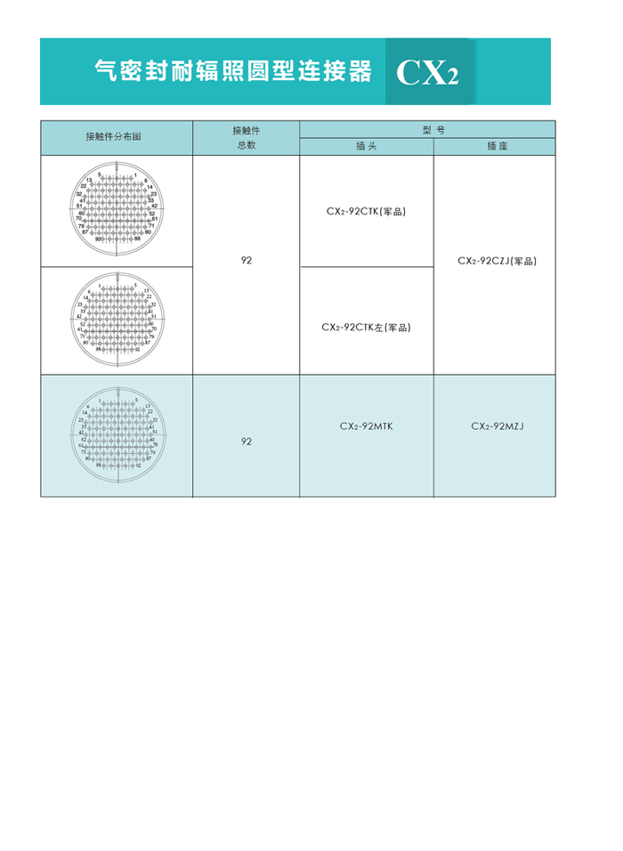 CX2系列氣密封圓形連接器,主要技術(shù)參數(shù)非等效采用美軍標MIL-C-26482G。廣泛應(yīng)用于各種電子儀器、密封容器的子設(shè)備與電源之間的電路連接。該系列連接器的連接方式為螺紋鎖緊連接,使用方便。插座采用玻璃燒結(jié)工藝,氣密性好。