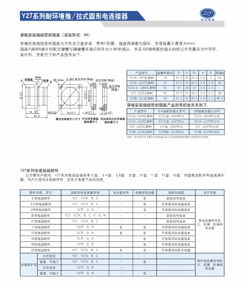 Y27A-2237ZJB4H/TKL真空腔專用密封航空插座連接器,接觸件37芯,可以接37根線。端接形式焊接。插座玻璃燒結(jié)工藝,密封性能強,在抽真空或加壓插座接觸件部位不漏氣,一般用于真空腔與大氣壓之間線路的連接。插座分單面插座,腔外有插頭連接。穿墻插座,里外有插頭連接。與插頭推拉鎖緊,方便快捷,不銹鋼殼體,防水防腐,一般用于艦船上,或者長期潮濕,霉菌中的環(huán)境。